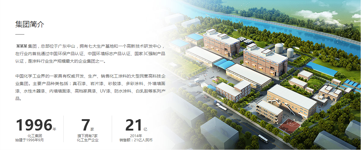 广东某某化工有限公司始建于1996年9月,依托卓越技术品质,凭借良好的信誉魅力,公司现已发展成为中国化学工业界的一家具有权威开发、生产、销售化工涂料的大型民营高科技企业集团。集团公司拥有七大生产基地和一个高新技术研发中心,具有一支涂料研发专业技术团队,研发创新能力位于行业前茅。